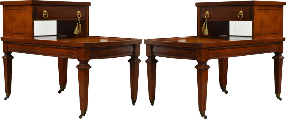 Mid Century Mahogany Leather Top Side Tables by Mersman - A Pair